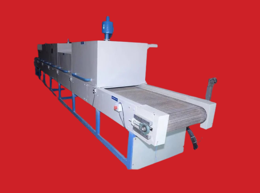 This is a belt conveyor oven consisting of various zones where variable/same temperature can be maintained in different zones of the oven. Common or individual control panels can be provided on each zone. Air circulation for uniform temperature is provided by fans/blowers in each zone. The jobs are placed on the belt on the loading side of the oven & unloaded from the other side. Product Description